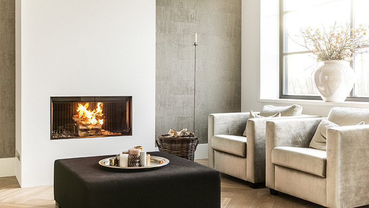 De familie Dam heeft uiteindelijk gekozen voor de Kalfire W85/40F. Door het minimalistische ontwerp gaat alle aandacht uit naar het schitterende vlammenspel. Deze liftdeurhaard kent nauwelijks kaders, waardoor de haard strak is ingebouwd. ,,De montage is vakkundig gedaan. Het geheel is netjes afgewerkt en het enige dat wij moesten doen was het sauzen van de ombouw. Bij oplevering van de haard, hebben de monteurs samen met ons voor de eerste keer de haard gestookt. Daarbij kregen we goede uitleg en tips, zodat we daarna zelf aan de slag konden.’’