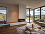 Brede elektrische haard van Kalfire met driezijdig vuurzicht.